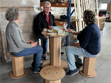 Stap binnen in de wereld van kartonnen meubels voor jouw volgende beurs of evenement! Maak kennis met Daantje, dé kartonnen stoel die de show steel...