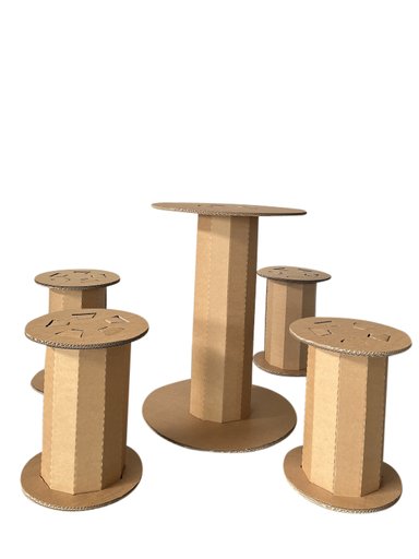Geniet van een uniek design met het kartonnen zitje in de vorm van een haspel! Dit kartonnen zitje is een echte eye-cather voor in elk interieur. H...