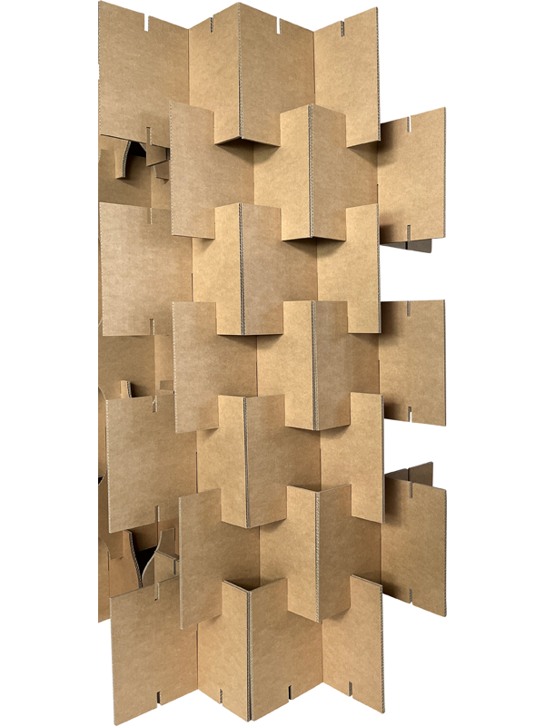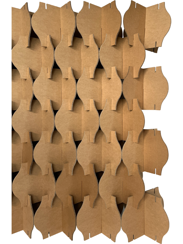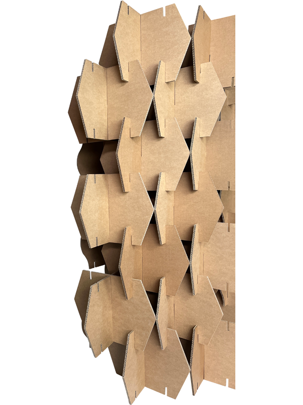Deze kartonnen beurswand is modulair op te bouwen. Je kunt zelf bepalen hoe breed en hoe hoog je de beurswand wilt maken.