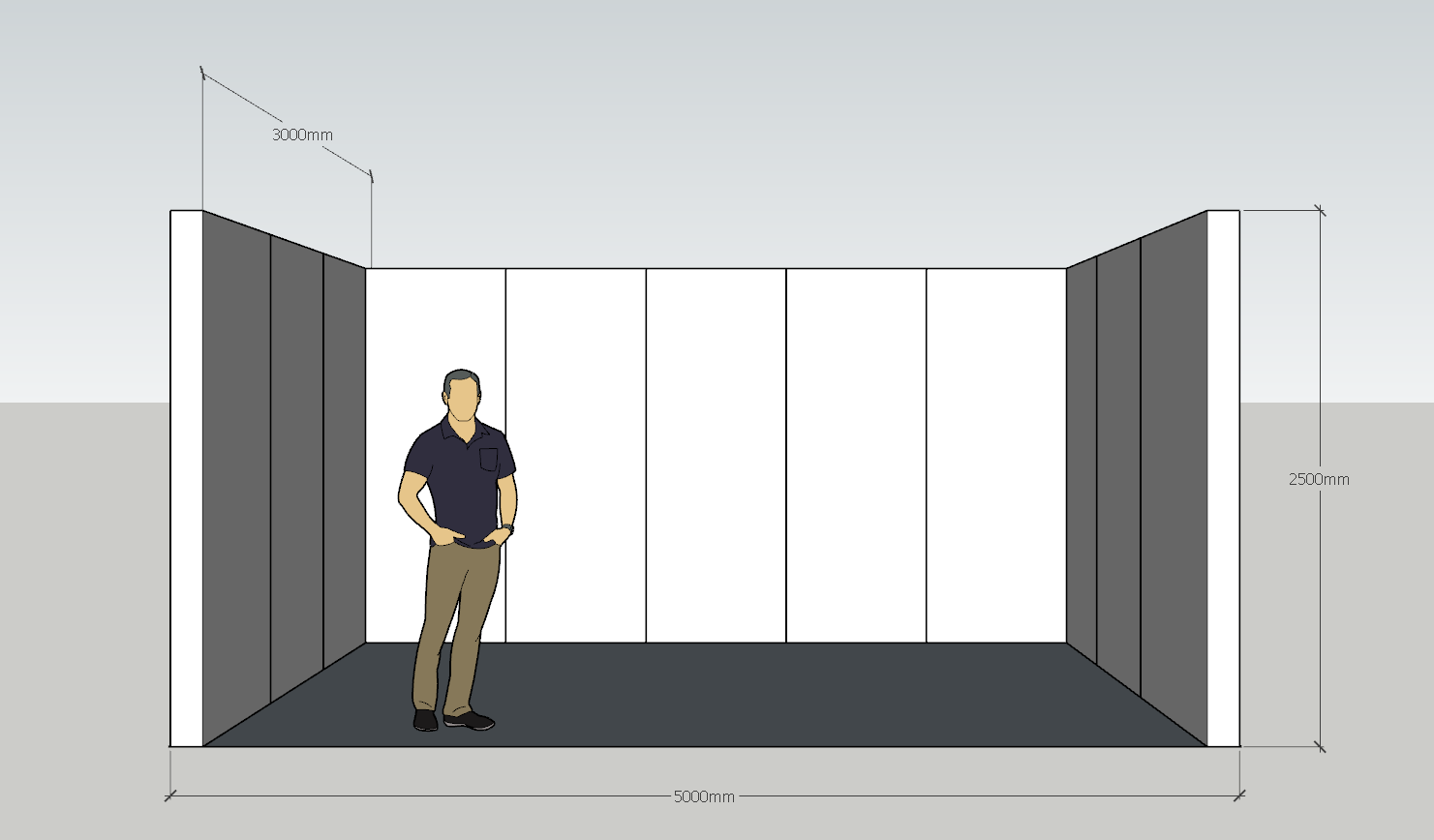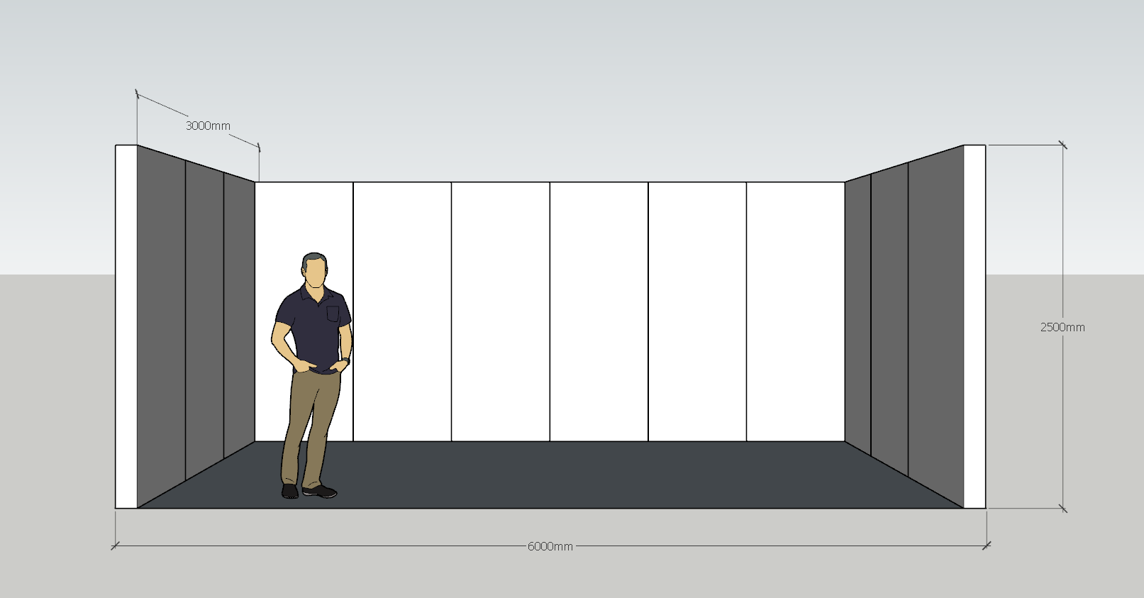 Is een wand B3000 x H2500mm, dan wordt het printbestand B3020 x H2520 mm. Daarbij gelden nog de volgende specs: