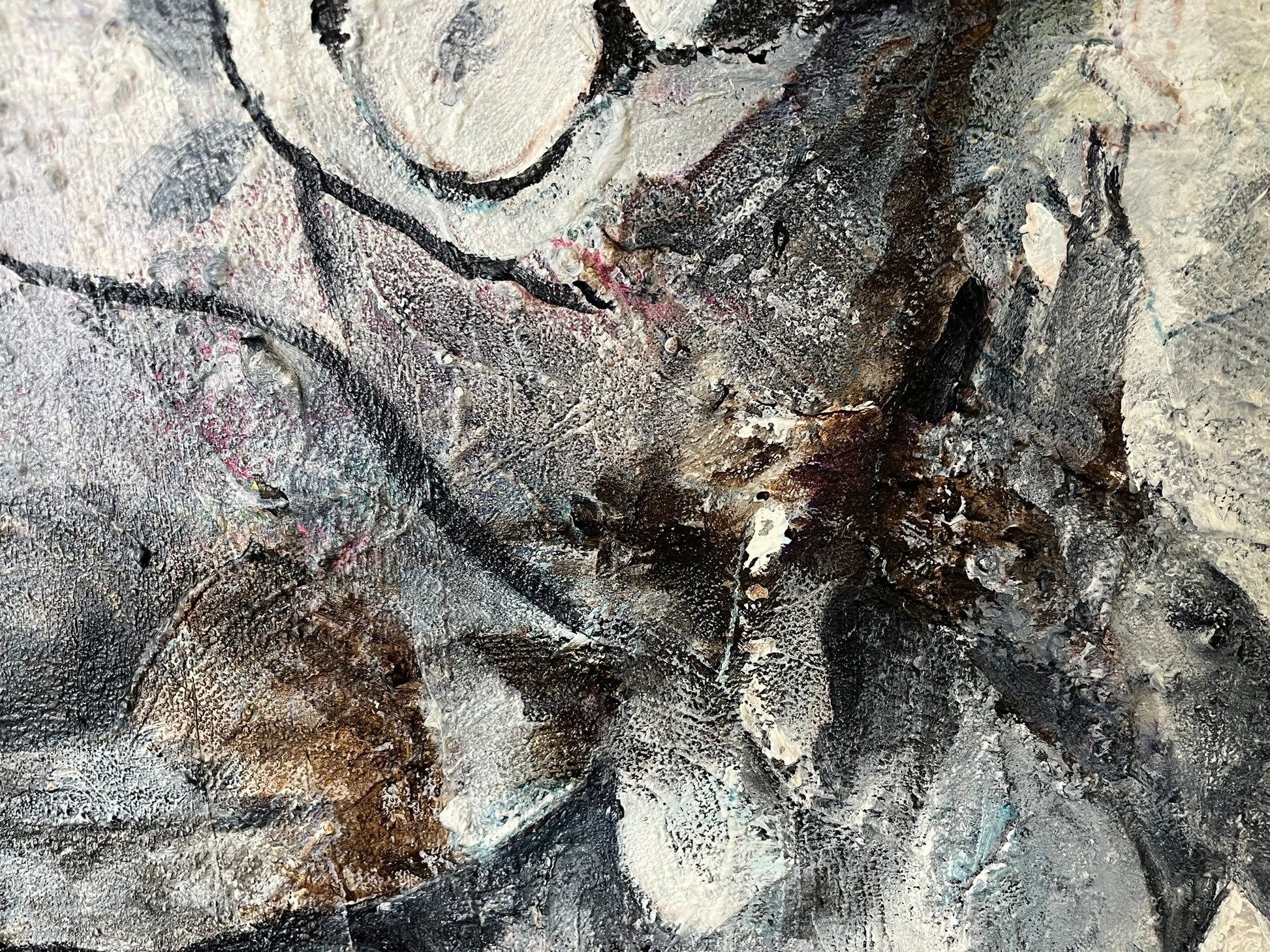 Dit bijzondere schilderij vangt de majestueuze uitstraling van een leguaan in een verbluffend driedimensionaal effect. Door gebruik te maken van verschillende materialen zoals papier en zand, creëert de kunstenaar een textuurlijke achtergrond die de leguaan tot leven brengt. De gedetailleerde afwerking met acrylverf en lak.