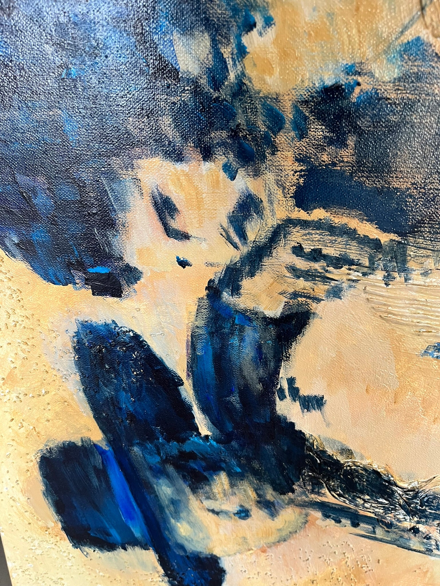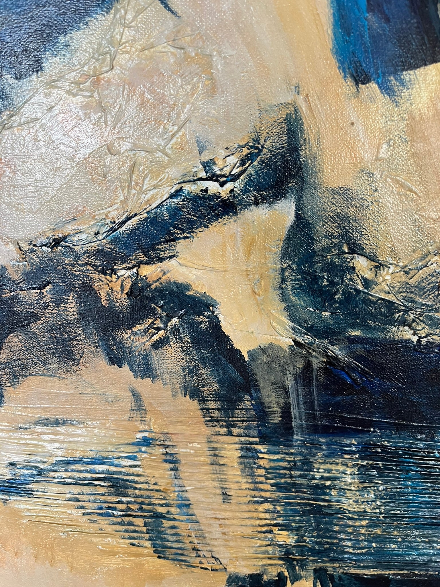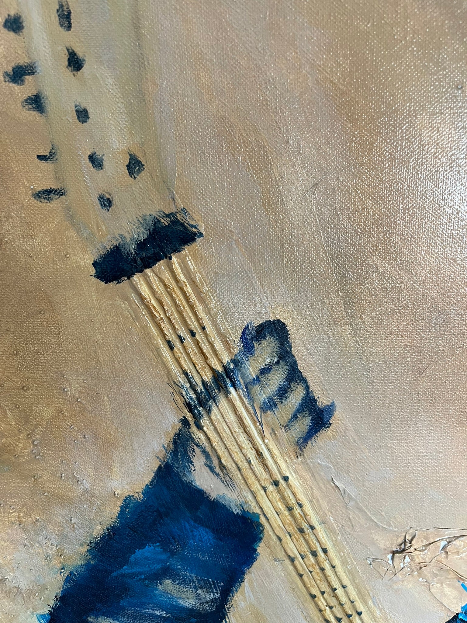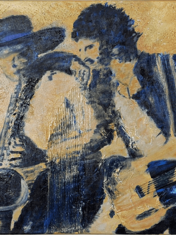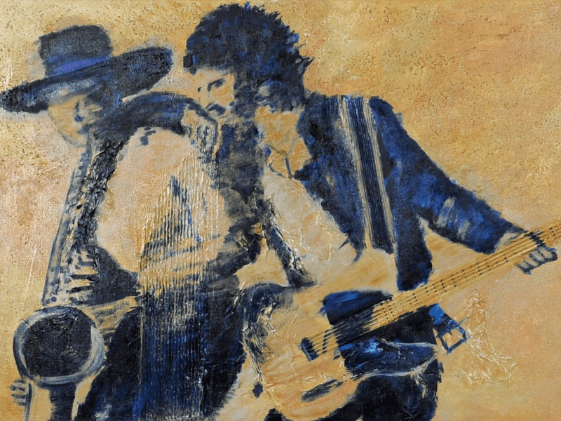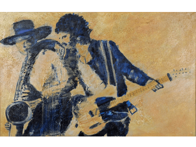 Dit unieke schilderij brengt een ode aan de legendarische samenwerking tussen Bruce Springsteen (Scooter) en Clarence Clemons (The Big Man). Met zorgvuldig gelaagd karton en papier creëert de kunstenaar een dynamisch reliëf dat de energie van hun muziek en vriendschap vastlegt.